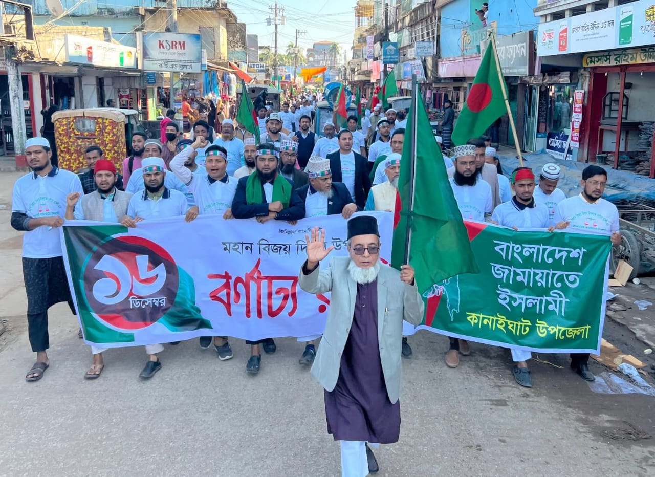 মুফিজুর রহমান নাহিদ স্টাফ রিপোর্টার :- দেশব্যাপী ৫৫ তম বিজয় দিবস ২০২৫ উদযাপিত হচ্ছে । এর অংশ হিসাবে - কানাইঘাট উপজেলা জমায়াতের আয়োজনে গাছবাড়ীতে জামায়াতে ইসলামির বিশাল বিজয় দিবসের বর্ণাঢ্য র্যালীর ও পথসভা অনুষ্ঠিত হয়েছে।বাংলাদেশ জামায়াতে ইসলামী ৮নং ঝিংগাবাড়ী ইউনিয়ন শাখার আমির বিলাল বীন রহমতের পরিচালনায়, ৭নং দক্ষিণ বাণিগ্রাম ইউনিয়ন এর আমির