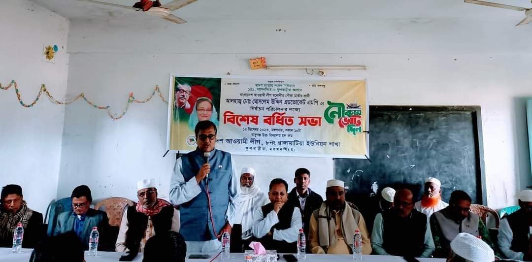আল এমরান: দ্বাদশ জাতীয় সংসদ নির্বাচনে বাংলাদেশ আওয়ামী লীগ মনোনীত নৌকার প্রার্থী মোঃ মোসলেম উদ্দিন এডভোকেট এমপির নির্বাচন পরিচালনার লক্ষে ফুলবাড়িয়া উপজেলা আওয়ামী লীগের অন্তর্গত রাঙ্গামাটিয়া ইউনিয়ন আওয়ামী লীগের বিশেষ বর্ধিত সভা অনুষ্ঠিত হয়। মঙ্গলবার বাবুগঞ্জ উচ্চ বিদ্যালয়ে এই সভা হয়।
