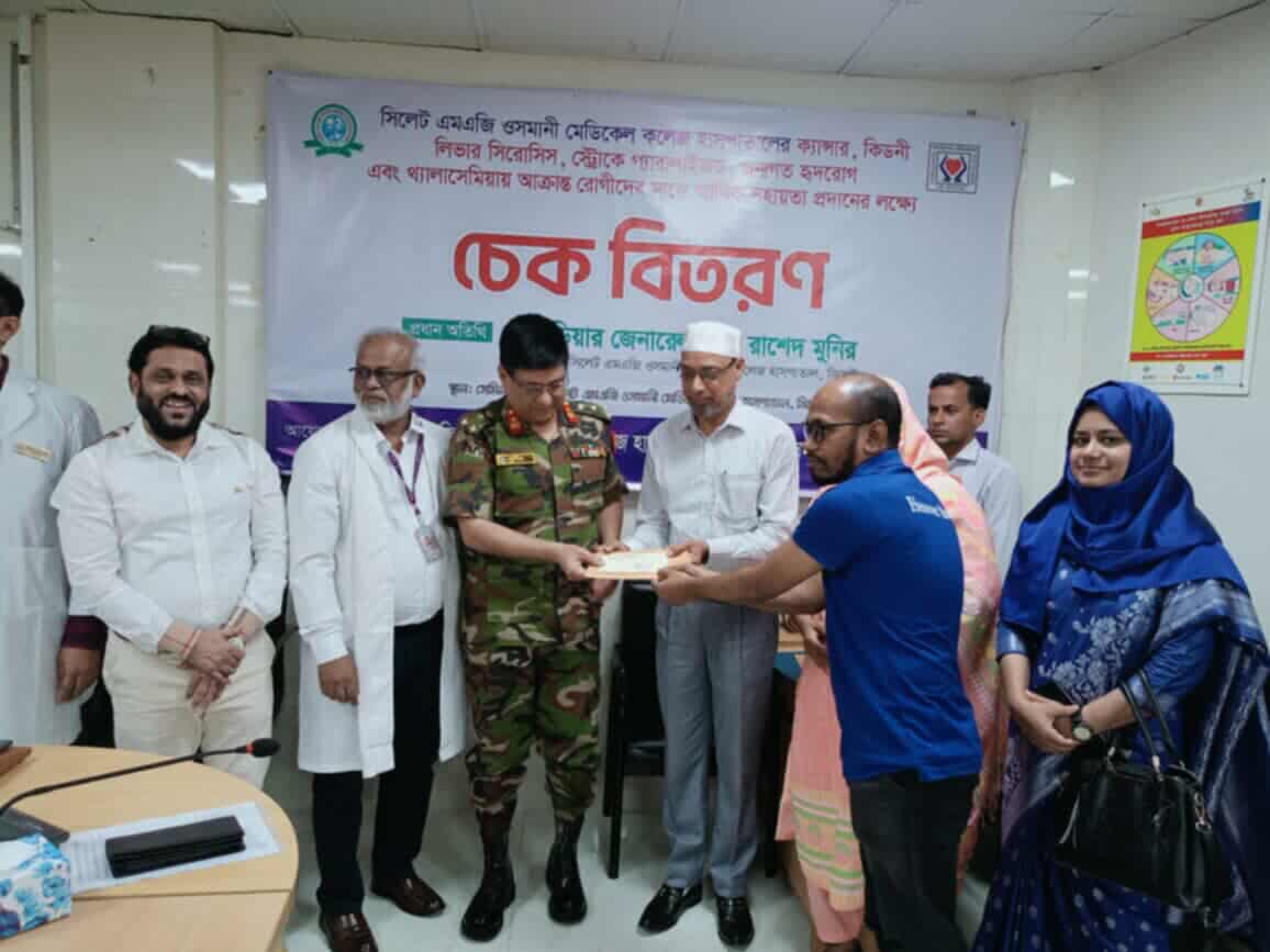 সিলেটে জটিল রোগে আক্রান্ত ১০০ রুগেআক্রান্তদের মধ্যে চিকিৎসা সহায়তা চেক বিতরণ