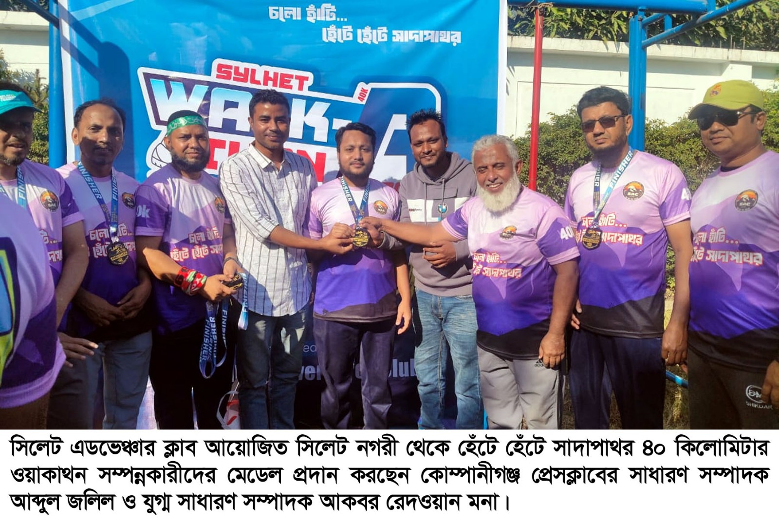 সিলেট অ্যাডভেঞ্চার ক্লাব এর উদ্যোগে আয়োজিত হেঁটে হেঁটে সাদাপাথর ৪০ কিলোমিটার ওয়াকাথন অনুষ্ঠান ২৭ ডিসেম্বর শনিবার অনুষ্ঠিত হয়। সুস্থতার বার্তা সবার মধ্যে ছড়িয়ে দিতে জনসচেতনতা বৃদ্ধির লক্ষ্যে সিলেট এডভেঞ্চার ক্লাবের এ আয়োজন করেছে।