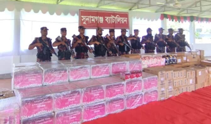 ২৮ বর্ডারগার্ড ব্যাটালিয়ান(বিজিবি)”র সদস্যদের অভিযানে ভারত বাংলদেশের সীমান্ত দিয়ে অবৈধভাবে সুনামগঞ্জে নিয়ে আসা ভারতীয় বিপুল পরিমান কসমেটিক্রস ও পশু চিকিৎসার ঔষধ এবং একটি কাভার্ডভ্যান আটক করা হয়েছে। যার বর্তমান বাজার মূল্যে প্রায় এককোটি ৬২ লাখ টাকার উপরে হবে।