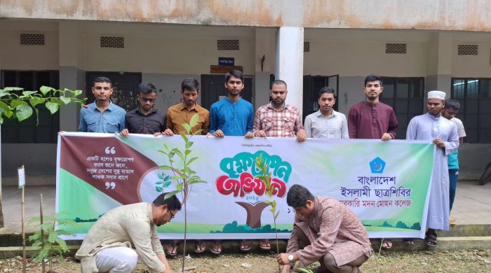 মাসব্যাপী ‘বৃক্ষরোপণ অভিযান ২০২৫’-এর অংশ হিসেবে বৃক্ষরোপণ ও বিতরণ কর্মসূচি পালন করেছে বাংলাদেশ ইসলামী ছাত্রশিবির সরকারি মদন মোহন কলেজ শাখা। এতে উপস্থিত ছিলেন অত্র কলেজের সম্মানিত অধ্যক্ষ প্রফেসর মাহবুবুর রহমান