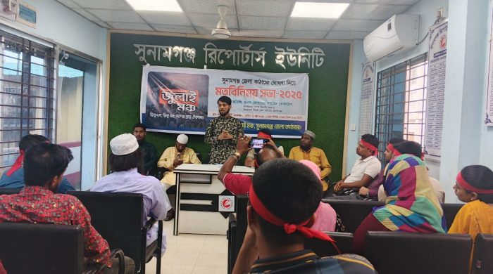 জুলাই মঞ্চ সুনামগঞ্জ জেলা শাখার কমিটি নিয়ে মতবিনিময় সভা। আজ শনিবার ২১ জুন সুনামগঞ্জ সদরের রিপোর্টারস ইউনিটে এই মতবিনিময় সভা অনুষ্ঠিত হয়। সিলেট জেলা কাঠামোর মুখপাত্র রুহুল আমিন জগলুর সভাপতিত্বে